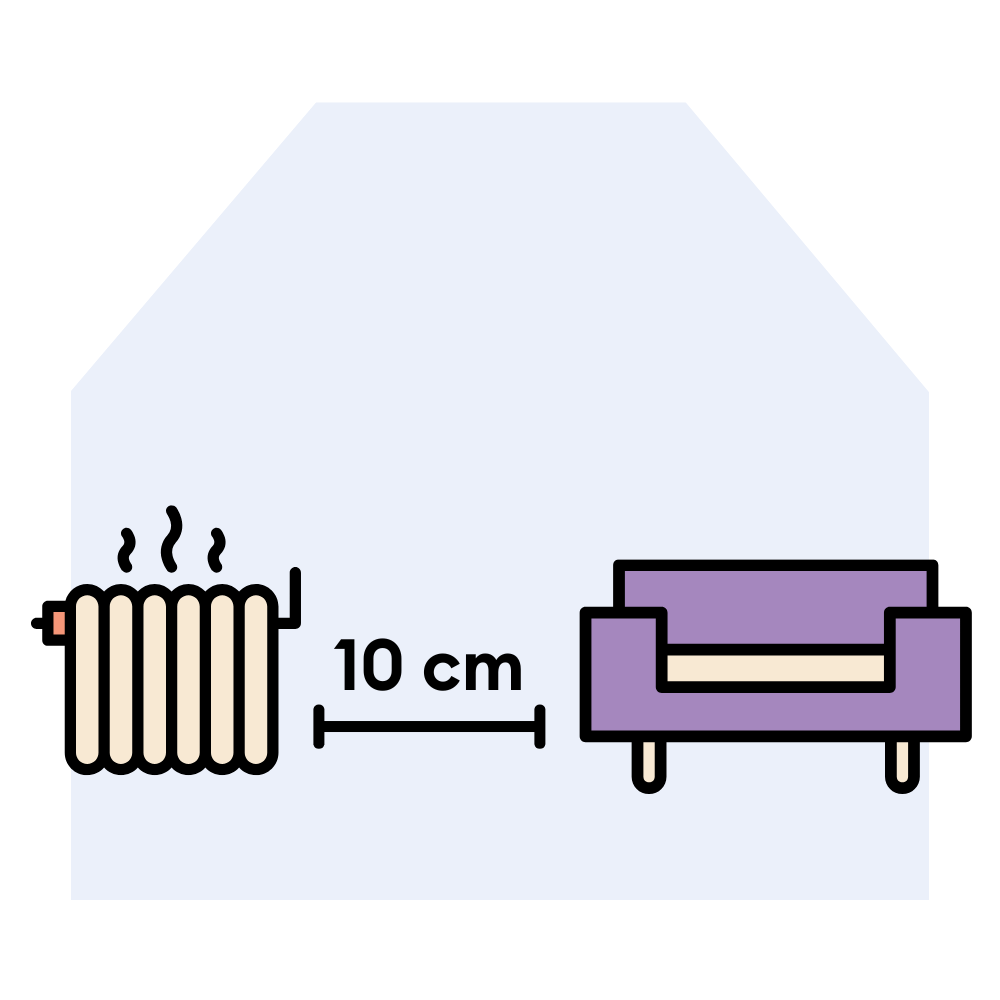 Zet meubels minimaal 10 centimeter van de buitenmuur en verwarming