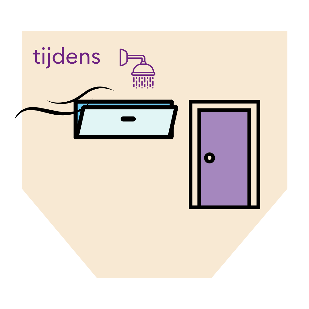 2. Tijdens het douchen (zónder mechanische ventilatie):