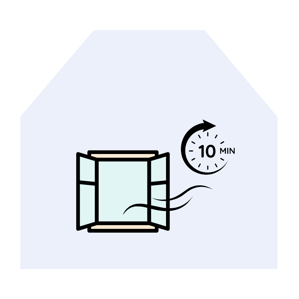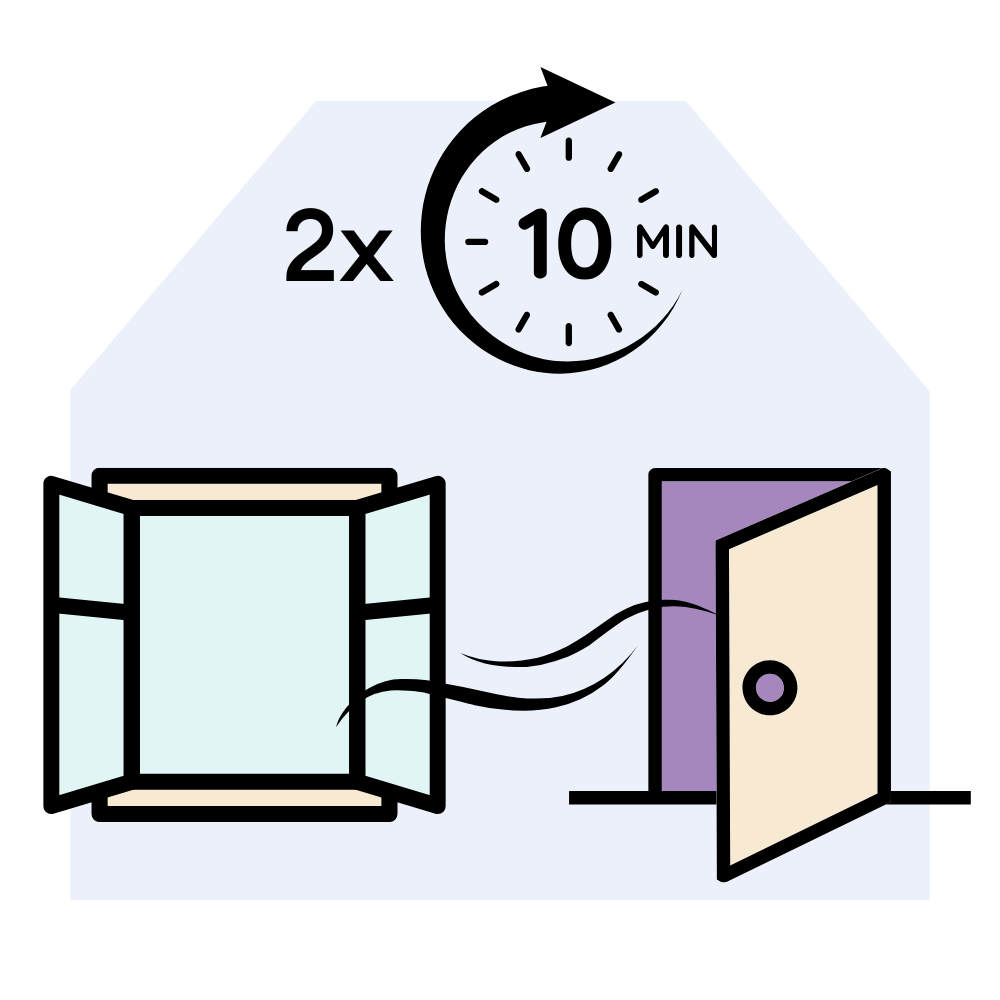 Zet alle ramen en deuren iedere dag 2 x 10 minuten open, ook in de winter